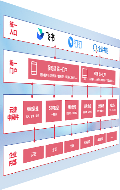 对协作平台提供支持服务,,,支持企业应用与协作平台对接,,包含组织同步、、消息集成、、、、待办集成等。。支持目前主流的协作平台:钉钉、、、企微和飞书。。